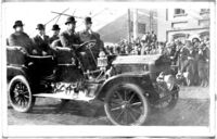 William H. Taft Auto Parade William Howard Taft (1857-1930), Republican nominee for President, on left in the back seat of the car. Judge Taft was being driven to the City Auditorium in Chattanooga where he addressed a large crowd. H. Clay Evans (1843-1921) is seated next to him. Mounted with 00004349 and 00004350.