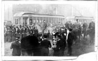 William H. Taft in Chattanooga William Howard Taft (1857-1930), Republican nominee for president, reception in Chattanooga. Shows band members, men on horseback, streetcars, and the crowd waiting. Torn bottom right corner. Mounted with and filed 00004348; 00004350 also on mounting.