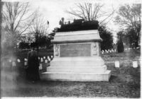 Woman visiting Andrews Raiders monument, National Cemetery Unidentified woman at Andrews Raiders monument, national military cemetery, 1200 Bailey Avenue, Chattanooga, Tennessee. Monument commemorates 1862 Civil War raid led by James Andrews and seizure of the locomotive "The General." Paid for by the State of Ohio, the monument was erected 1890.