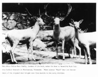 White fallow deer, Rock City Gardens White fallow deer, Rock City Gardens, Lookout Mountain, Georgia. Created by Mr. & Mrs. Garnet Carter, Rock City is a popular tourist attraction located at 1400 Patten Road Lookout Mountain, Georgia that opened in 1932. Caption reads: "This White Fallow Deer family, leaders of the herd, makes its home at Beautiful Rock City atop Lookout Mountain at Chattanooga, Tennessee. These unusual "Royal" deer are descendants of the original deer brought over from Austria in the early thirties."