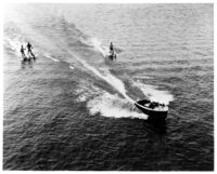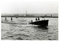 Water skiers behind boat Three skiers behind boat, probably on Chickamauga Lake