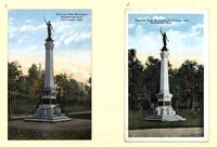 Views of the New York Peace Monument, Lookout Mountain #1 is color of New York Peace monument, issued between 1915 and 1930. #2 is black and white, issued between 1907 and 1922. New York Peace Monument erected in 1907 as part of Point Park Monument has statues of 2 men, 1 Confederate, 1 Federal, shaking hands. Point Park is part of the Chickamauga and Chattanooga National Military Park, created by Act of Congress in 1890 and dedicated in 1895. 00005913 mounted on verso. Printing on front of each card. "Stokes" in right lower corner of card no. 2