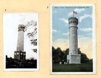 Views of Wilder Brigade monument, Chickamauga and Chattanooga National Military Park 3 views of Wilder Brigade monument (also called Wilder Tower), completed 1903, in the Chickamauga and Chattanooga National Military Park: 1. Color postcard showing Wilder Brigade monument. Printed on the top left corner of the postcard: "Wilder's Tower, Chickamauga Bluff, Chattanooga Tenn."; postcard ca. 1910. 2. Black and white postcard showing Wilder Brigade monument and two automobiles, ca. 1935. Second copy on verso, mounted with 00005855. 3. Color postcard with white border, ca. 1915 showing Wilder Brigade monument and cannon. Printed at bottom of postcard "13456 Widow Glenn's Hill, showing Wilder Monument, Chickamauga, Ga." and "Copr Detroit Publishing Co." The first national military park, Chickamauga and Chattanooga National Military Park was created by an Act of Congress in 1890 and dedicated in 1895. The majority of the park is located in Catoosa and Walker Counties, Georgia, but some sections are in Lookout Mountain, Tennessee, while others are in and around Chattanooga, Tennessee. Item #00005855 mounted on verso.