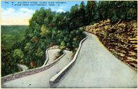 W Road, Walden's Ridge Color postcard of the "W" Road. Road completed in 1893. Color postcard mounted with 00001628, filed under 6003. Caption on front of postcard reads "The "W" Walden's Ridge, Along Dixie Highway, 7 miles from Chattanooga, Tennessee."