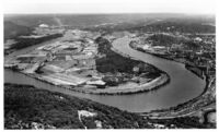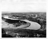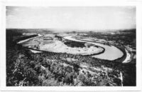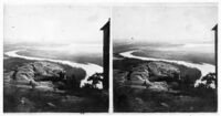 View of Moccasin Bend and the Tennessee River from Lookout Mountain View looking across the east end of the Lookout Mountain battlefield toward Chattanooga showing Moccasin Bend and the Tennessee River. Reproduction of original stereograph in Linn Collection Hist. C. Acc. 129, add. 1, folder 46. Mounted with 00005551, 00005552 and 00005553. Linn Photography Studio located on Lookout Mountain, Tennessee; in business 1863-1939. Operated by Robert M. and James Birney Linn, and later by George Thomas Linn.
