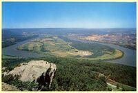View of Moccasin Bend from Lookout Mountain View of Moccasin Bend and the Tennessee River from Lookout Mountain. Moccasin Bend Psychiatric Hospital also shown. Possibly a giant postcard.