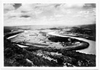 View of Moccasin Bend from Lookout Mountain View of the Tennessee River Valley and Moccasin Bend from Lookout Mountain. Reproduction of National Arcives photograph no. 111-B-4737. Damage to glass negative is visible in reproduction.