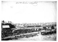 United States military railroad hospitals U. S. Military railroad hospital for employees located in Chattanooga, Tennessee. Many loose train parts are in the foreground. Reproduction of National Archives photograph no. 165-C-1045. Writing across top of photo.