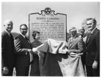 Unveiling historic marker at Ross's Landing Unveiling historical marker at Ross's Landing by Tennessee Historical Commission April 9, 1976. Shown left to right, Dudley Porter, County Judge Don Moore, Joan Franks, Stanley Lewis, Dr. James Livingood, and Mayor Charles "Pat" Rose. Ross's Landing renamed Chattanooga in 1838.