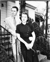 Young couple on steps Photo shows same couple as in 364 192 standing at front of the house. -