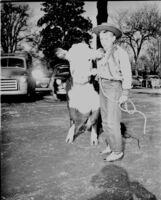 Young cowboy with cow Cowboy showing cow probably at cattle show in Warner Park. See also 634 673. -