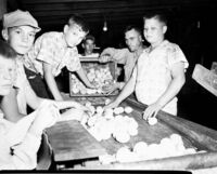 Young boys processing peaches