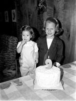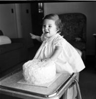 Young girl with first birthday cake -