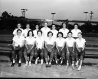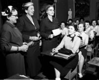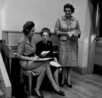 Women visit high school classroom Class could be Lillian Patton's Latin class at City High. -